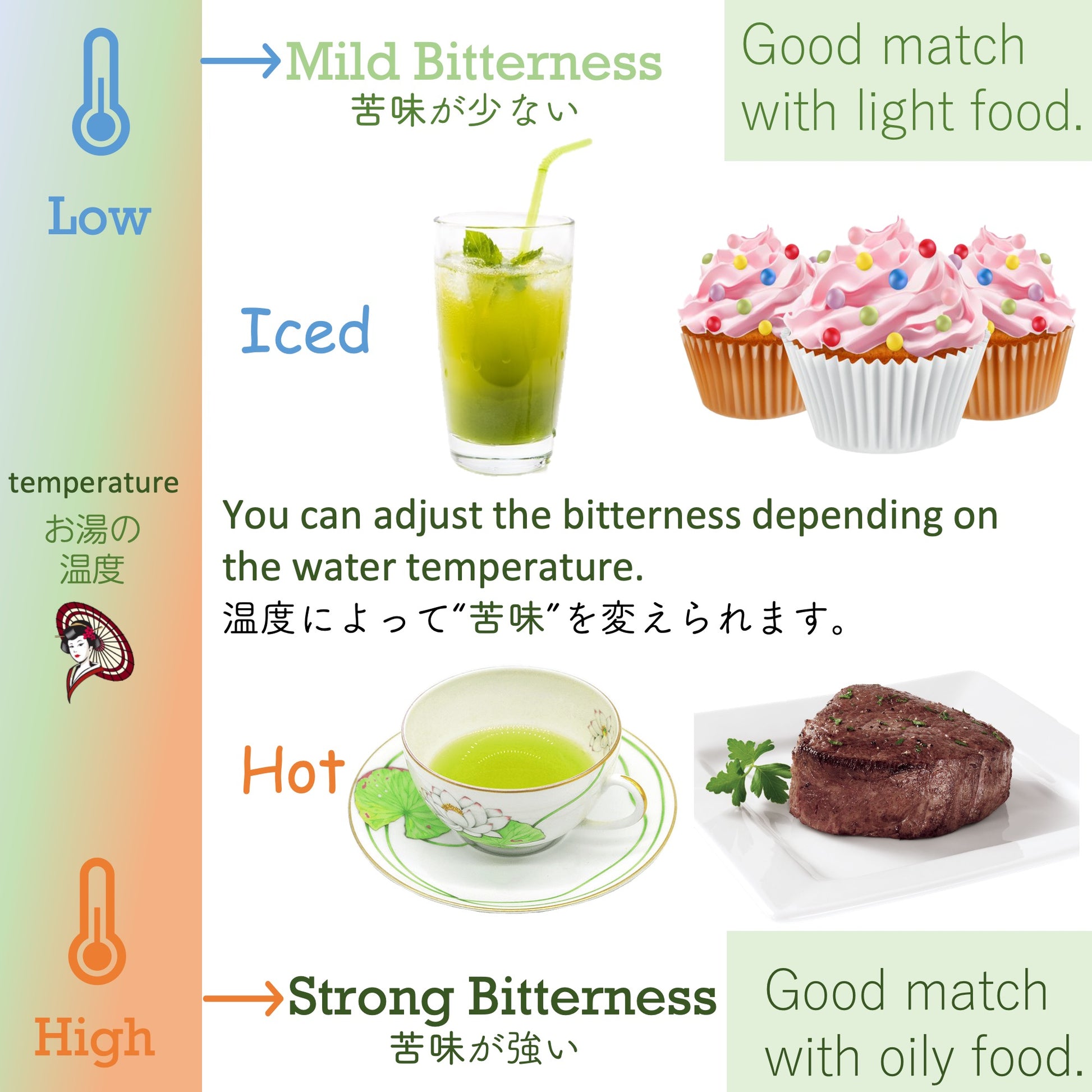 🍵 抹茶の苦味は冷たい水で作る場合は減少します。The bitterness of powdered matcha green tea decreases when making cold matcha with cold water.