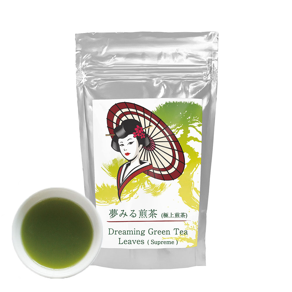 Las hojas de té verde "Dreaming Green Tea Leaves" Supreme Sencha Yame son una oferta lujosa de Mukoh Matcha, diseñada para los amantes del té más exigentes. Procedentes de la famosa región de Yame, conocida por su cultivo de té de calidad superior, estas hojas prometen una experiencia de té exquisita. La variedad "Dreaming Green Tea" (Supreme) Sencha es famosa por su rico sabor umami, su color verde vibrante y su fragancia aromática. Cada sorbo de "Dreaming Green Tea Leaves" (Supreme) despliega una mezcla armoniosa de dulzura y sutiles notas herbáceas, que encarnan la esencia de la cultura tradicional del té japonés. Perfecta para momentos de reflexión o una sofisticada ceremonia del té, esta selección Supreme te invita a saborear el arte del té con cada taza.