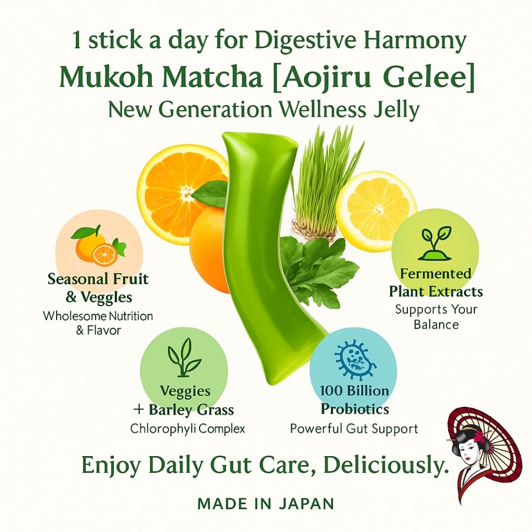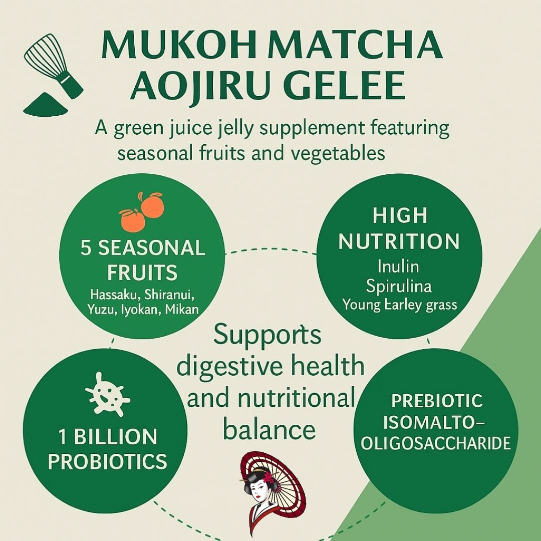 ⭐️ Bulk & Wholesale Mukoh Matcha [Aojiru Gelee] – Seasonal Fruits & Vegetables Jelly with Probiotics Supplement
