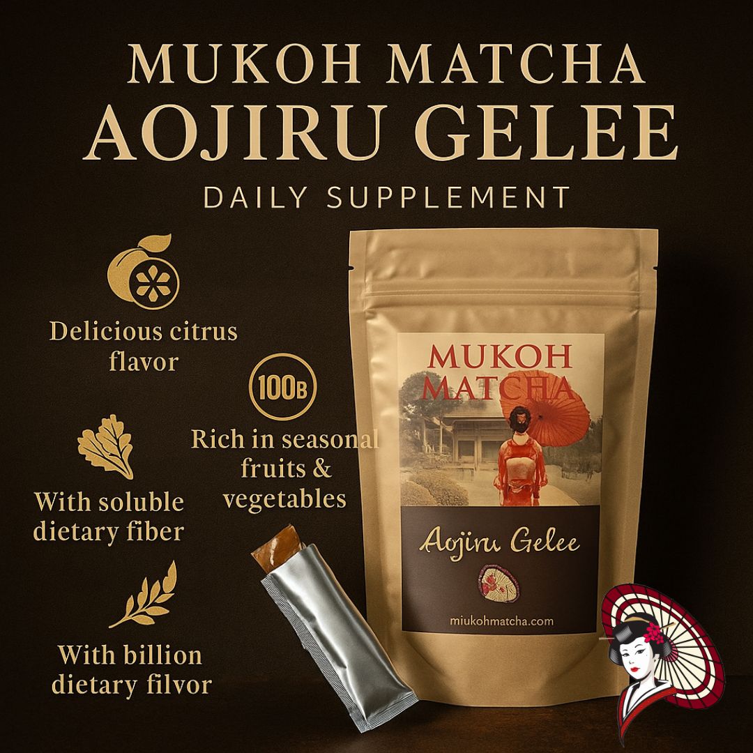 Mukoh Matcha [Aojiru Gelee] is a refreshing wellness jelly packed with seasonal fruits, vegetables, and functional ingredients to support digestion, balance, and daily vitality.