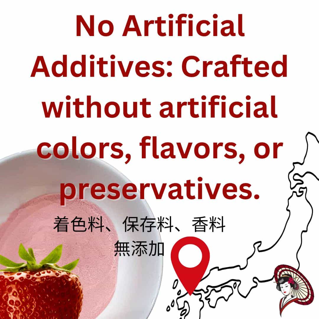 - 🌸 100% Freeze-Dried Amaou Strawberries: Made from premium strawberries grown in Fukuoka, Japan.